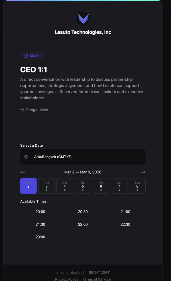 Whether you offer consultations, demos, appointments, or services — Lesuto Connect turns your store into a booking platform.